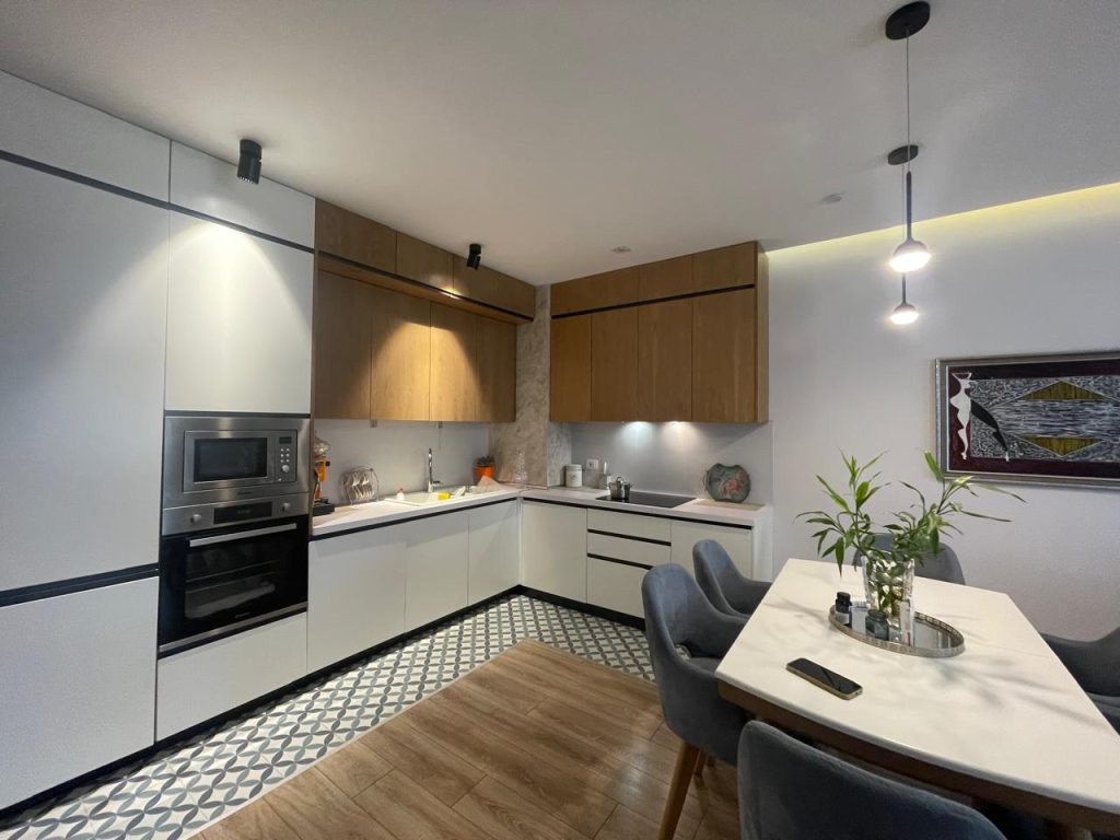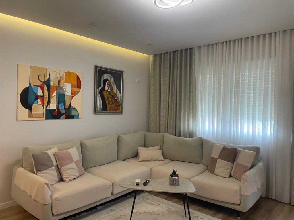 Apartamenti ndodhet ne nje godine te ndertuar ne vitin 2024. Apartamenti ka siperfaqe 60 m2 dhe perbehet nga nje sallon i madh nje dhome gjumi, nje tualet, dhe nje ballkon.
