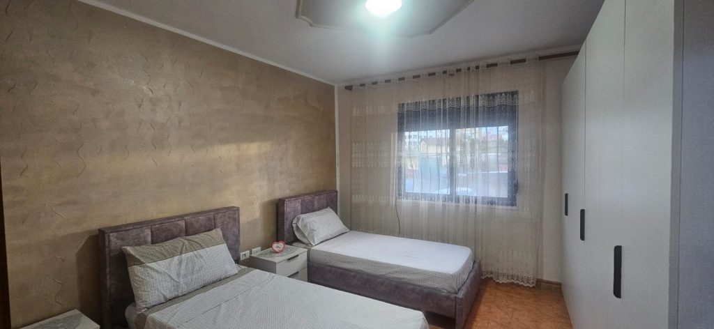 Apartamenti ndodhet ne nje godine te ndertuar ne vitin 2024. Apartamenti ka siperfaqe 60 m2 dhe perbehet nga nje sallon i madh nje dhome gjumi, nje tualet, dhe nje ballkon.